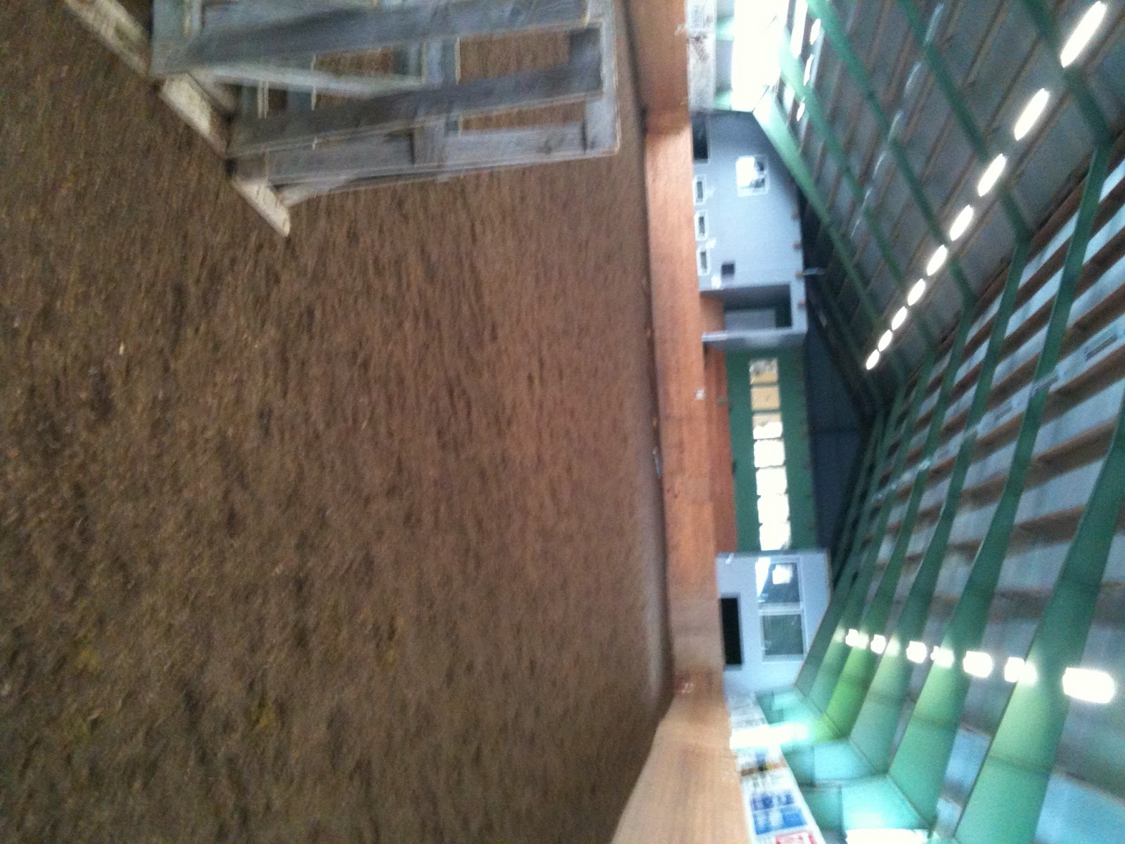 Ridhuset, med dom här avskärmarna som syns lite på vänster sida delar man ridhuset på kvällen så att en del är de lektioner i och den andra är för privatryttare.